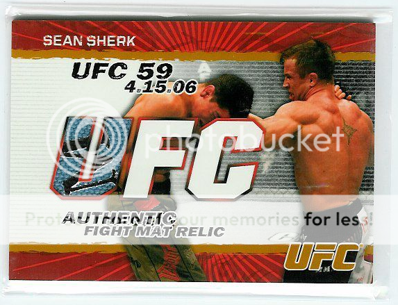 RingKing: Karo v. Thompson just after the fight is stopped, Thompson is on his knees and Yamasaki is wiping his face with a towel. "TM" is between Mario's legs. It is at the bottom of the Toyotires logo, their is a slogan below the big toyotires sign, at the end of the slogan there their is "TM" in black on the gray mat just like in Elite's relic. I will try to find a link...