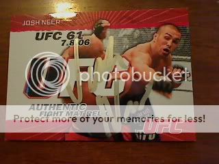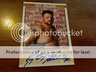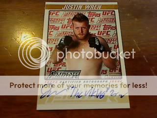 These two cards are extremely rare. A few of the TUF fighters signed their nick names to their on card autos. Roy Nelson replied to me on Facebook and said he did 10-15 this way. This is #5. I also own 2 of Justin "The Viking" Wren.